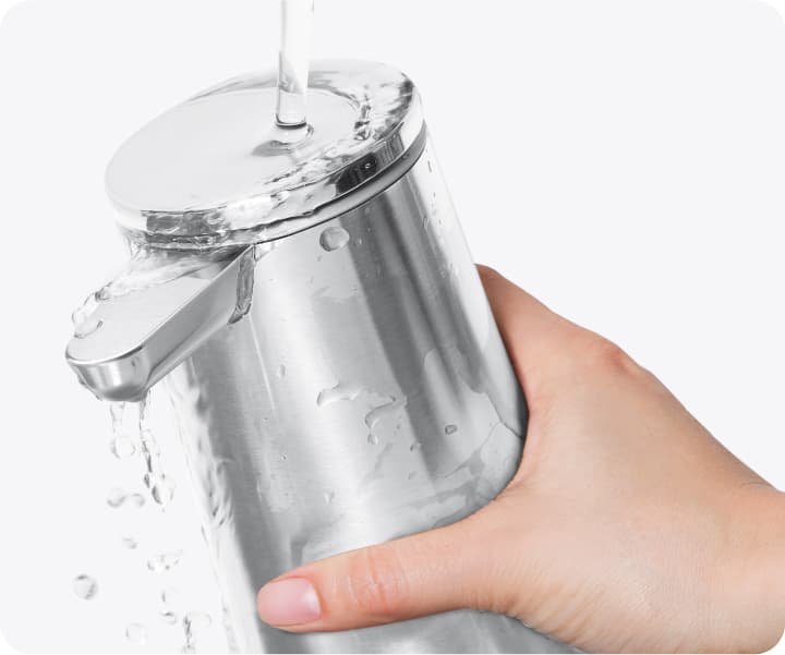 Notre pompe à capteur délivre une quantité de savon différente en fonction de la distance à laquelle vous placez votre main. Près pour un peu - loin pour beaucoup.