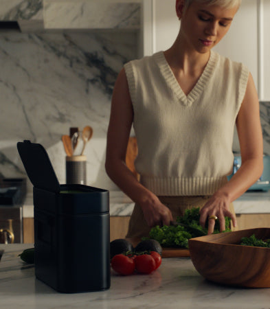 Combinez notre bac à compost à votre poubelle pour une solution intelligente et flexible tout-en-un pour trier vos déchets.
