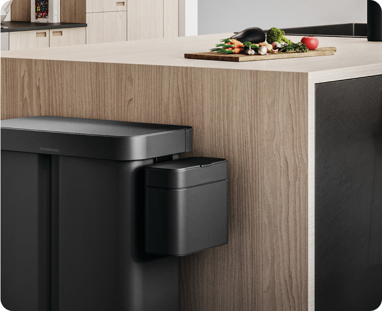Notre nouveau bac à compost se fixe facilement sur le côté de certaines poubelles Simplehuman,. Vous pouvez ainsi collecter vos déchets alimentaires au même endroit que le reste, pour un tri des déchets encore plus efficace !