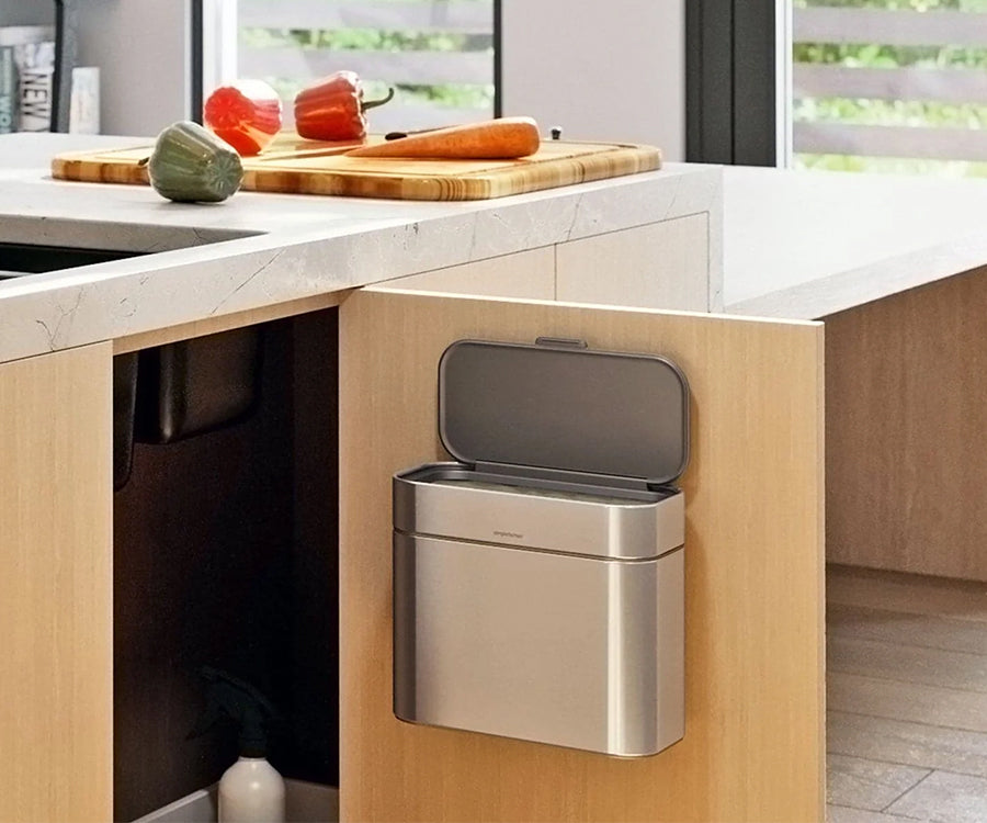 Accrocher solidement votre bac à compost au mur, ou sous l'évier de la cuisine pour plus de discrétion, grâce à son support mural. La fixation magnétique permet de décrocher facilement le bac à compost du socle pour y mettre les déchets alimentaires.