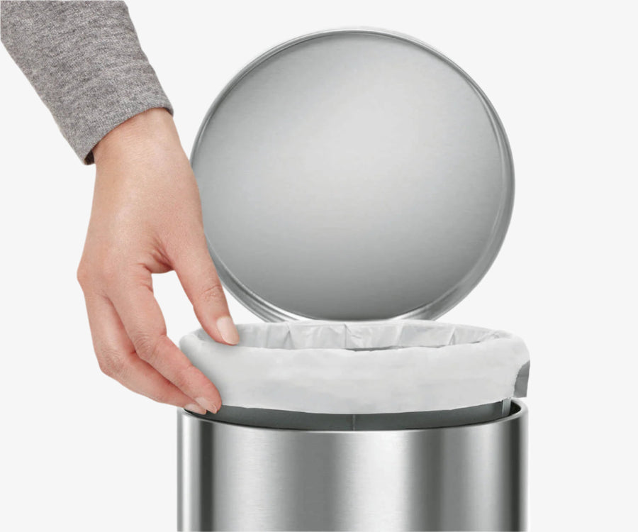 Nos sacs poubelle ont été conçus sur mesure pour nos poubelles afin qu’ils restent en place et soient complètement cachés lorsque le couvercle est fermé.