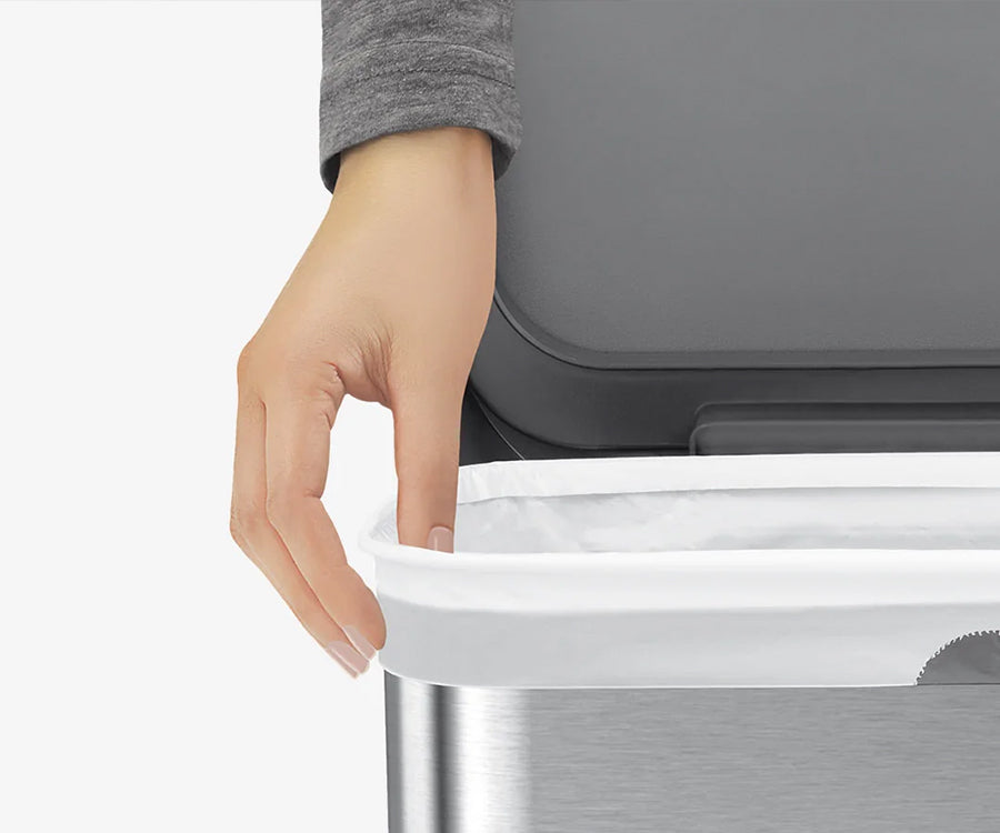 Nos sacs poubelle ont été conçus sur mesure pour nos poubelles afin qu’ils restent en place et soient complètement cachés lorsque le couvercle est fermé.