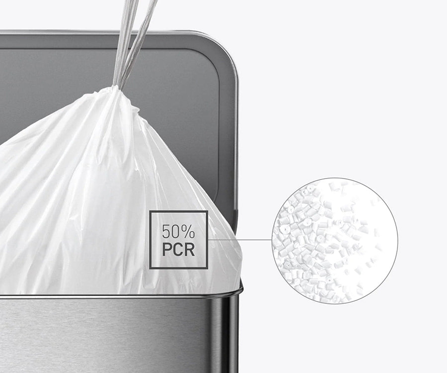 Sans compromis pour la durablité : fabriqués avec 50 % de plastique recylcé (PCR), nos sacs poubelles sur-mesure permettent de limiter la pollution de la nature et des océans tout en réduisant les émisions de carbone.