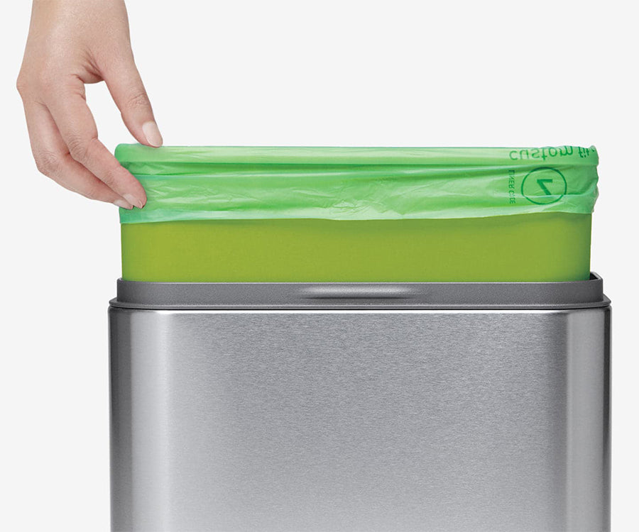 Nos sacs compostables sur mesure code z sont conçus pour s'adapter parfaitement à notre bac à compost afin qu'ils ne glissent pas et qu'ils restent bien cachés lorsque le couvercle est fermé.