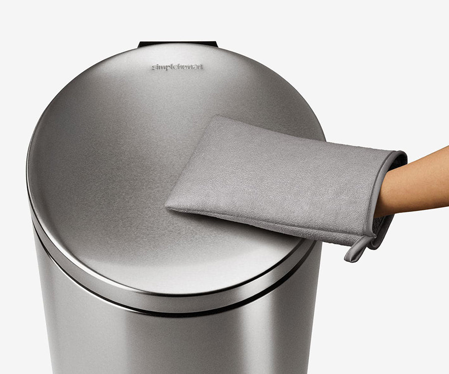 La technologie de la microfibre nettoie et astique de l’acier inoxydable avec de l’eau tout simplement. Humectez un côté du gant pour le nettoyage, puis faite briller avec le côté sec.