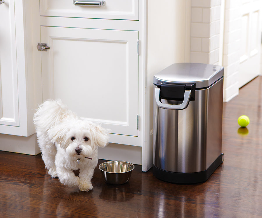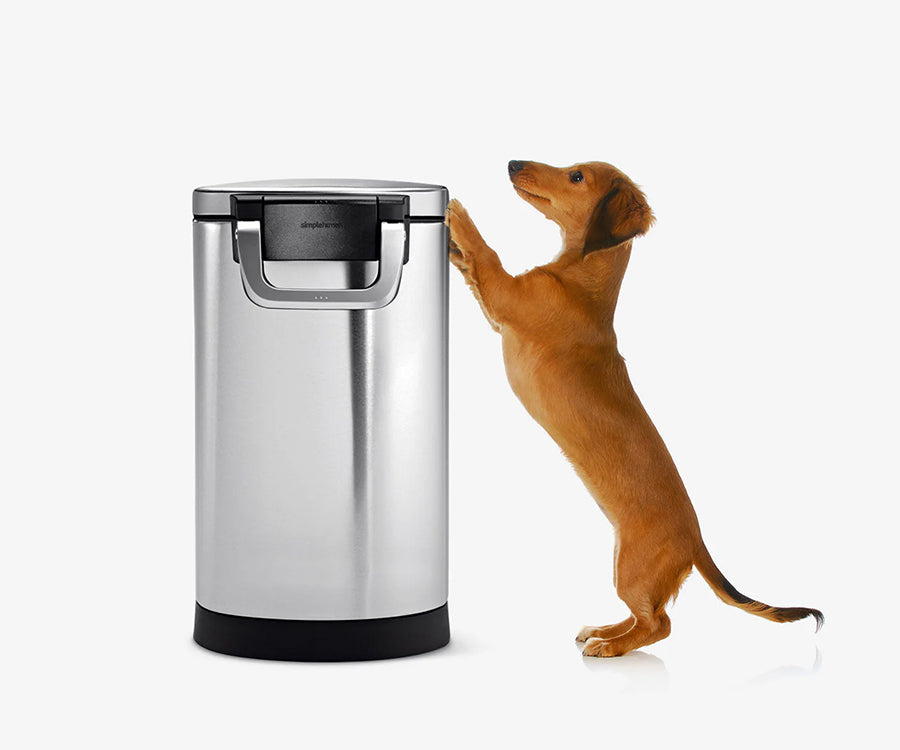 Lorsque le couvercle est fermé, un joint en silicone assure l’étanchéité pour conserver la fraîcheur des aliments pour animaux.