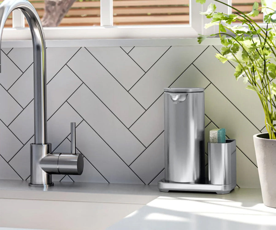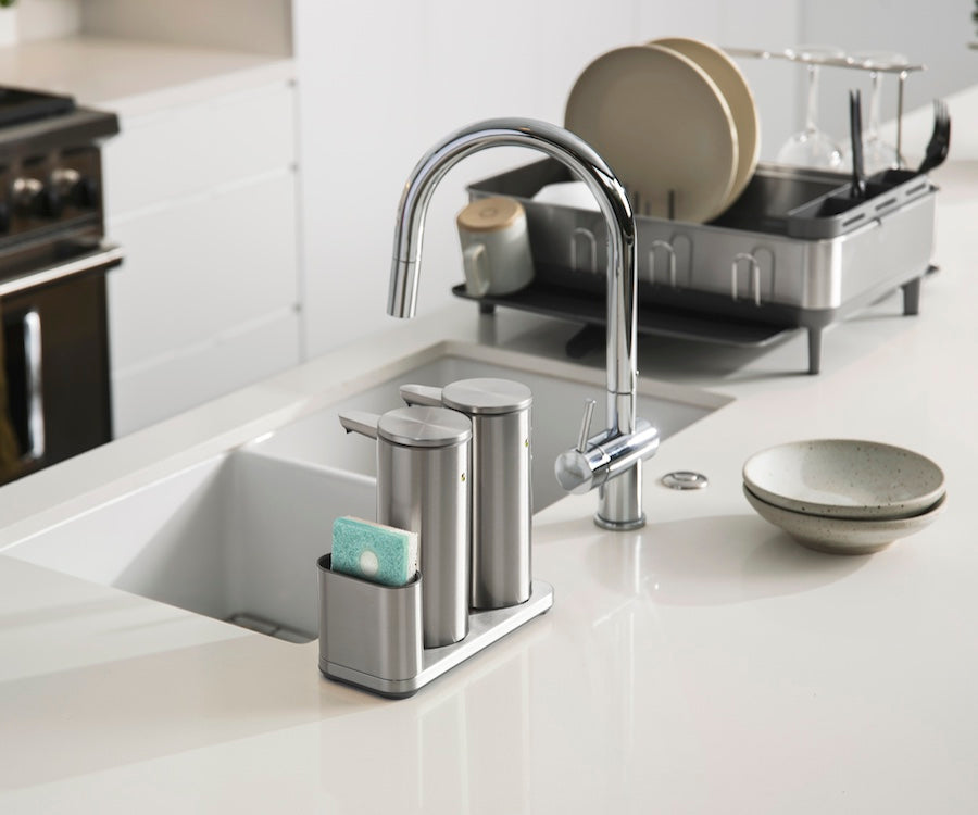 Offrez à votre distributeur et à votre éponge une place de choix avec notre rangement en acier inoxydable. Gardez la zone de l'évier nette.