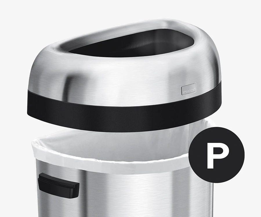 Le couvercle se relève pour un changement de sac plus rapide et pratique. Et des sacs sur mesure pour un ajustement parfait - pas de retroussement ou de glissement - pour une poubelle nette et propre.