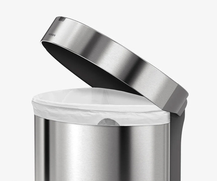 Le rebord se soulève pour accéder facilement au sac : pas besoin d'ôter le couvercle ni le bac pour le changer. Quand vous avez terminé, il se referme sur le sac pour parfaitement le dissimuler.