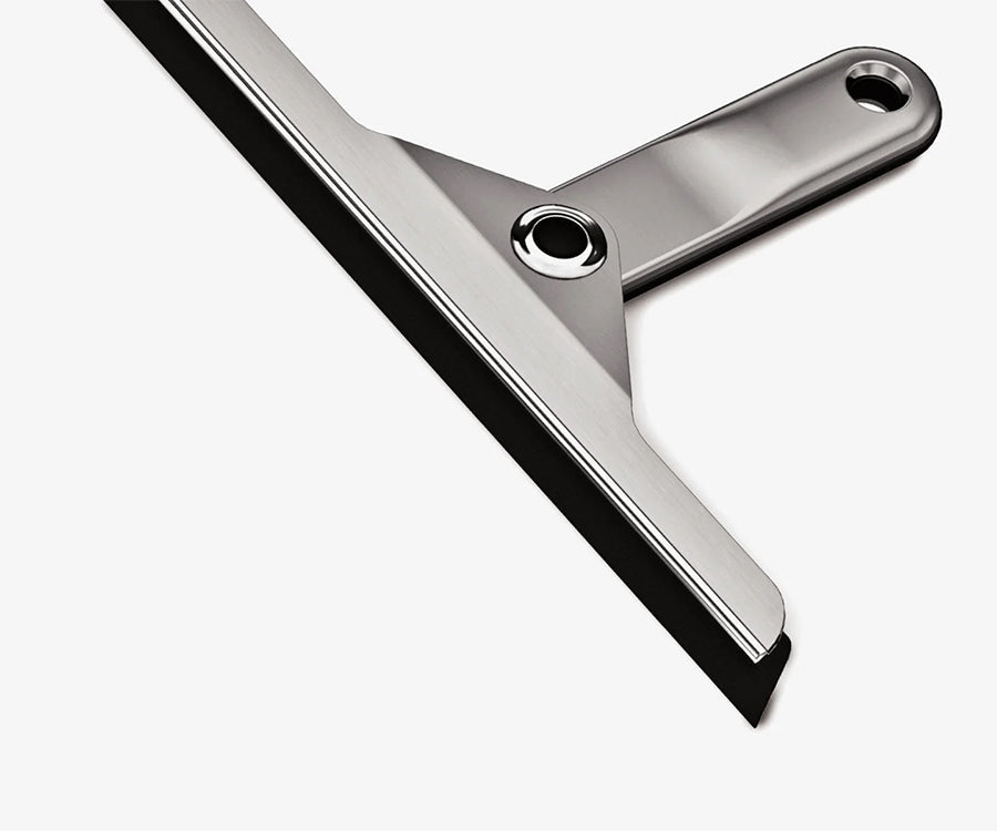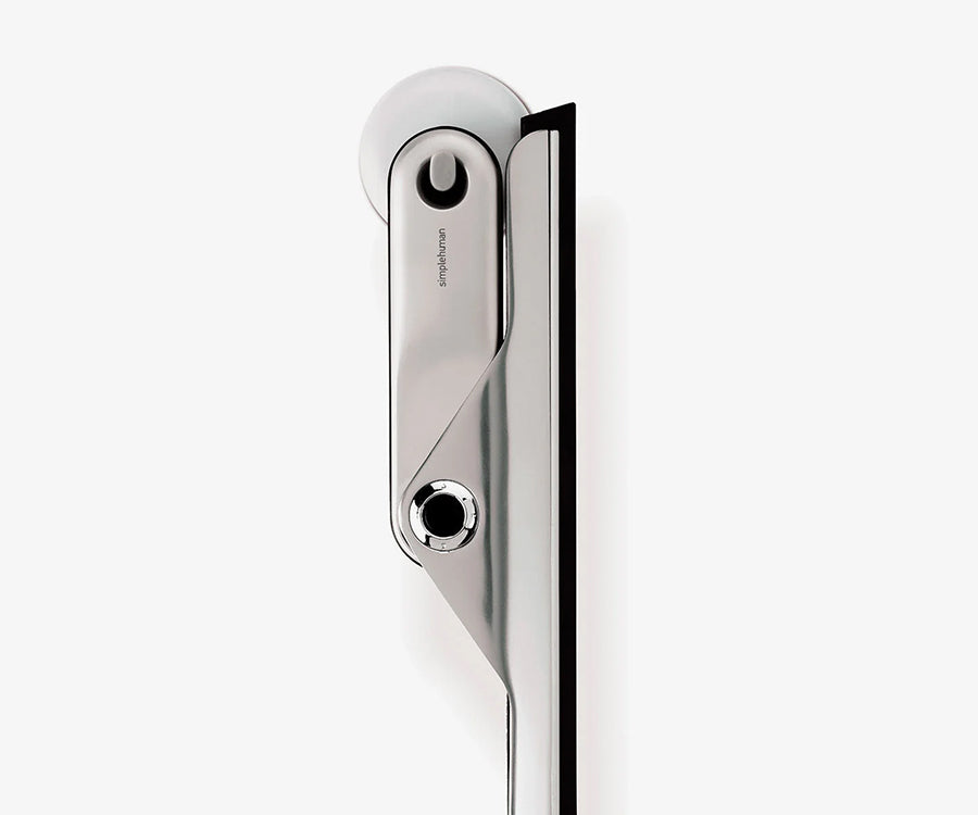 La poignée lestée et la barrette inclinée glissent en douceur sur les surfaces en verre.