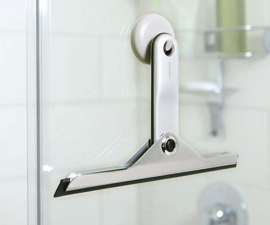 Dipose d'une ventouse permettant d’accrocher la raclette au mur ou à la porte de la douche.