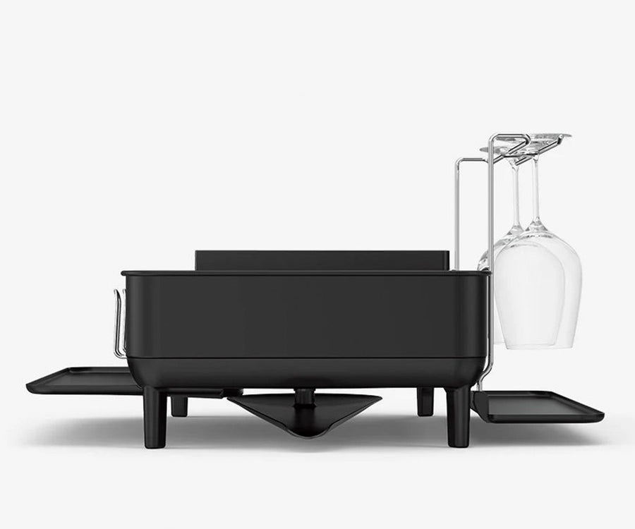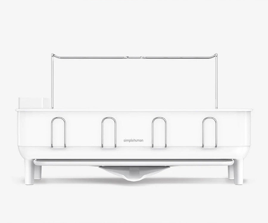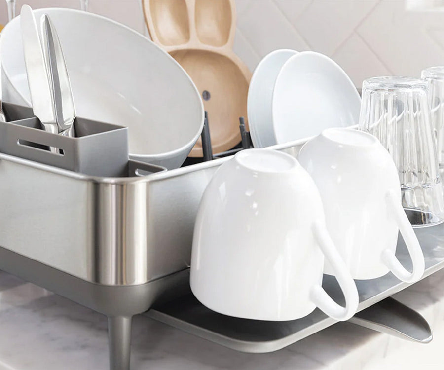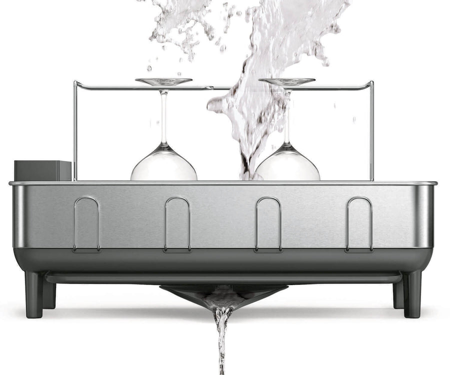 Vous avez beaucoup de vaisselle et des verres à vin extra-larges ? Notre égouttoir à cadre en acier a une capacité suffisante pour le gérer - et avec des porte-assiettes recouverts de silicone, votre vaisselle est toujours bien maintenue en toute sécurité - pas d'éraflures ni d'ébréchures.